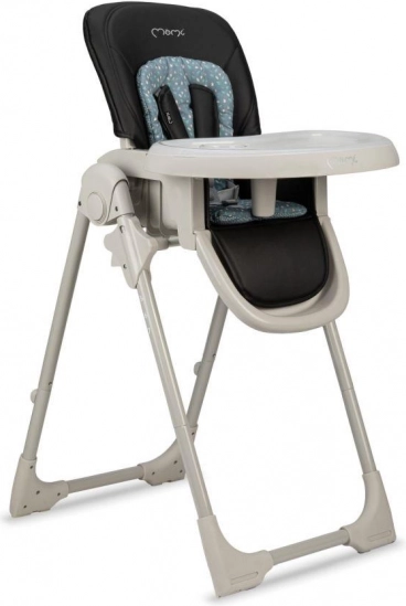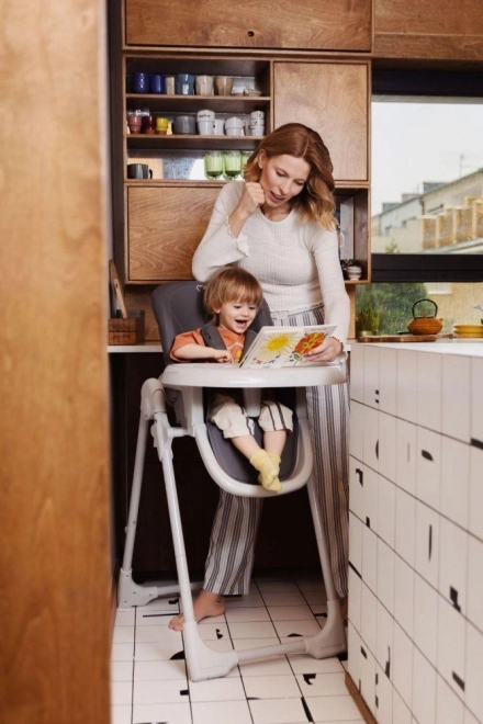Stolček ima dvostopenjsko nastavitev pladnja, pomembno pa je, da se zunanji pladenj lahko pomiva v pomivalnem stroju.