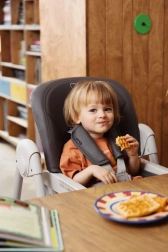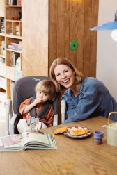 Stolček za hranjenje MoMi GOJO je opremljen s 5-točkovnimi varnostnimi pasovi, zato vaš otrok sedi varno, medtem ko mu v miru pomagate razširiti jedilnik.