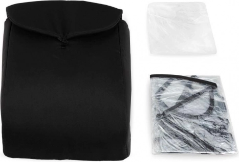 MoMi ESTELLE DAKAR je priložen komplet izjemno praktičnih dodatkov za vse letne čase: dežna prevleka, mreža proti komarjem in ujemajoča se prevleka za noge.
