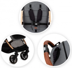 Maksimalno udobje in sodoben slog – takšen je voziček MoMi ESTELLE. Vaš otrok bo v njem potoval varno in udobno, vam pa ga bo prijetno potiskati.