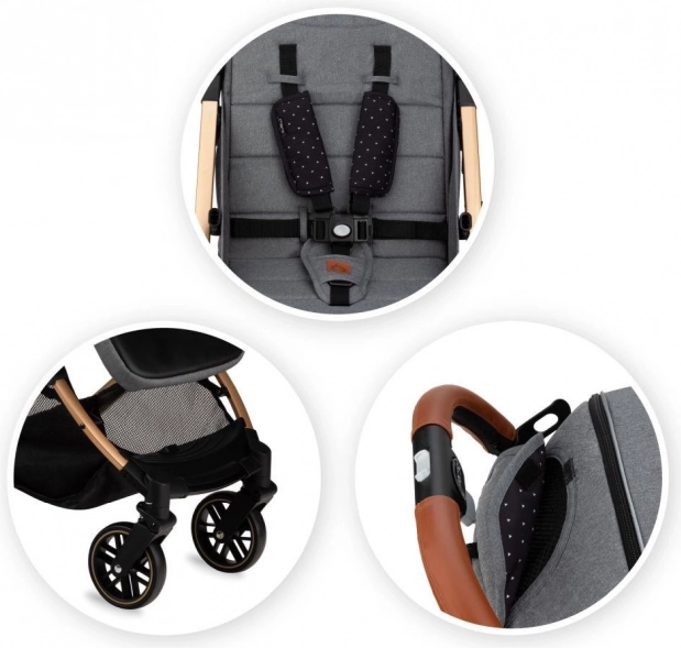Športni voziček MoMi ESTELLE siv z zlatim okvirjem 2022