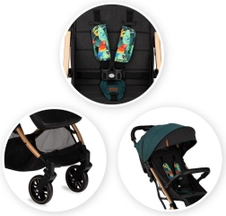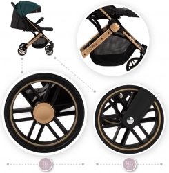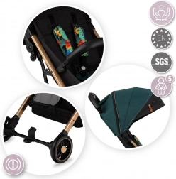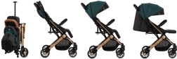 Otroku voziček nudi največje udobje: nastavljivo naslonjalo za hrbet, nastavljiva opora za noge z omeljivo eko usnjeno površino in pettočkovni pasovi otroka varno držijo na mestu. Za starše so tu hitro zlaganje, funkcija samostojnega stanja po zložitvi, teleskopski ročaj za vleko/potiskanje kot kovčka in prostorna košara za nakupe.