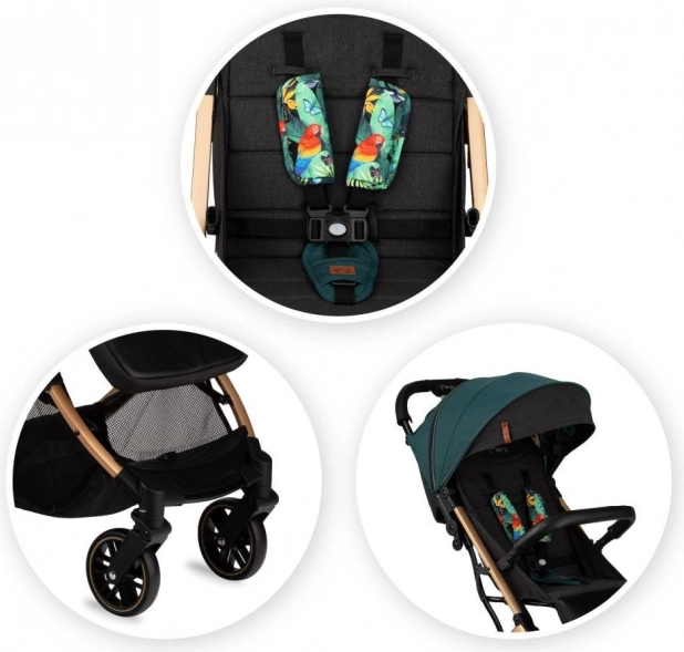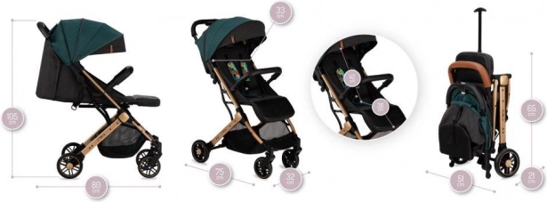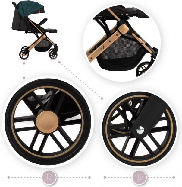 Športni voziček MoMi Estelle zelen z zlatim ogrodjem