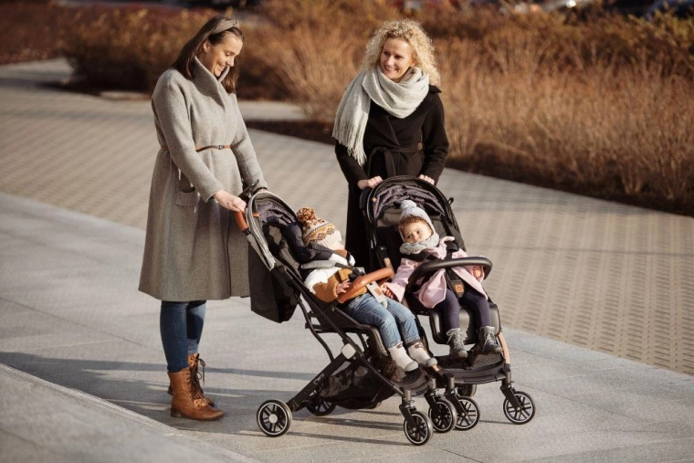 Zahvaljujoč PU kolesom, odpornim proti predrtju, in vzmetenju vseh 4 koles je voziček okreten in udoben za upravljanje tudi v mestnem terenu. Nastavljivo naslonjalo za hrbet in nastavljiv naslon za noge poskrbita za udobje pri sedenju in spanju. Varnost povečujejo pettočkovni pasovi, centralna nožna zavora, dvojno varovalo proti samodejnemu zlaganju in odsevni elementi. Prevleke iz eko usnja na varovalih z mehko peno se enostavno čistijo in prijetno držijo.