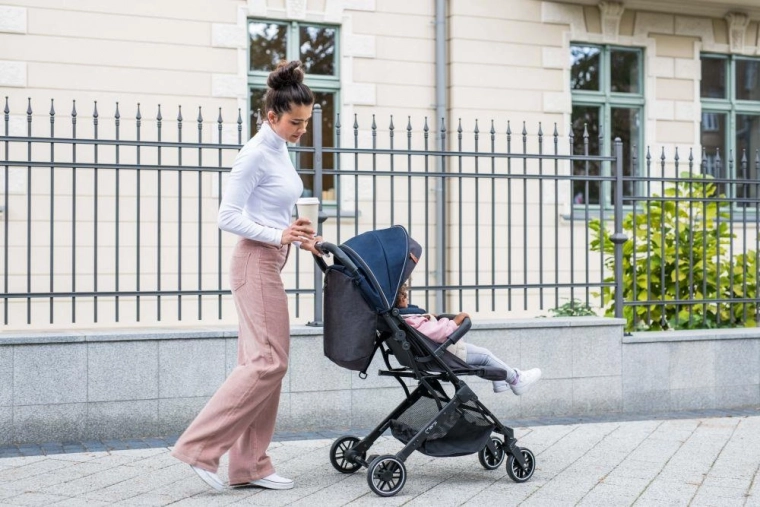 Voziček zložite v trenutku, s teleskopsko ročico pa ga preprosto potiskajte ali vlecite kot kovček. Funkcija samostojnega stanja prihrani prostor doma in v avtomobilu.