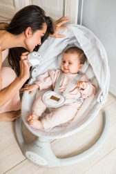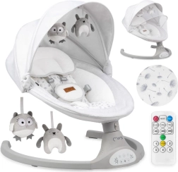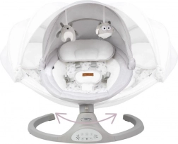 Električni gugalnik MoMi Kenani vašemu dojenčku prinaša pomirjujoče guganje in vam trenutek oddiha. Ponuja 5 stopenj guganja, vgrajene melodije, Bluetooth za lastno glasbo in daljinsko upravljanje. Lahka in stabilna konstrukcija, pettočkovni pasovi, strešica z mrežo proti komarjem in enostavno pralna prevleka zagotavljajo varnost in udobje doma in na prostem.