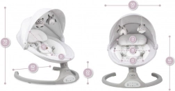 MoMi Kenani je sodoben električni gugalnik, zasnovan za mir, udobje in varnost dojenčka. Nežno bočno guganje posnema naravne gibe v maternici, tihi motor ne moti spanca, 10 melodij ali lastna glasba preko Bluetootha pa dojenčka pomiri in zabava. Z daljinskim upravljalnikom zlahka nastavite hitrost guganja, glasnost in časovnik, ne da bi vstajali.
