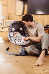 Naravni bočni gibi posnemajo guganje v maternici in spodbujajo hitrejše uspavanje. Tih motor ne moti dojenčka niti vas.