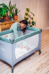 Potovanje z otrokom je pravi izziv! Vi, mamica, želite, da je vašemu otroku udobno. Pri vsakem potovanju so noči posebej pomembne, saj takrat otrok potrebuje varnost in udobje. Potovalna posteljica MoMi BELOVE vam bo prišla prav med vsemi nočmi izven doma. Je lahka, enostavno se zloži in priložena je praktična potovalna torba. Otroška posteljica MoMi BELOVE lahko služi tudi kot igralna ograja, zato je idealna tudi za vsakodnevno uporabo.