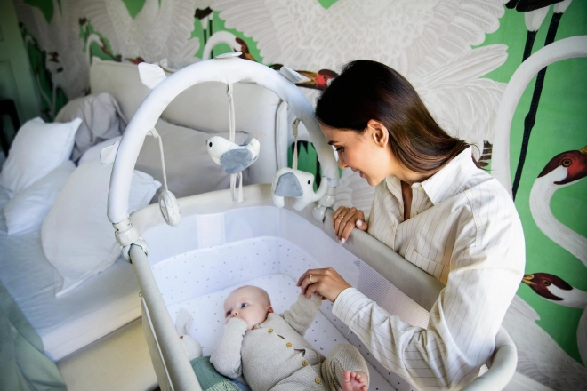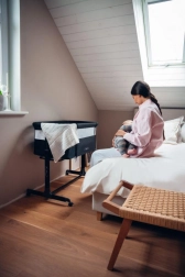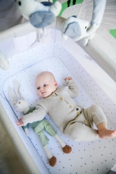 - S šeststopenjsko nastavitvijo boste posteljico nastavili na pravo višino, s čimer boste malčka ohranili v vaši bližini in si zagotovili udobje.