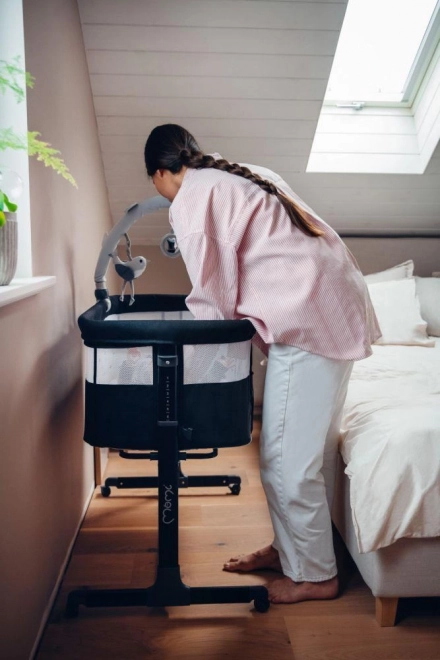 - Otroška posteljica MoMi REVO je opremljena tudi s kolescema za lažje premikanje, ko to potrebujete. Kolesca imajo zavoro, ki omogoča ohranjanje stabilnosti posteljice, ko služi kot obposteljna posteljica.