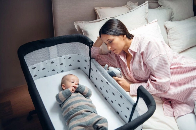 - Otroška posteljica MoMi REVO je popolna rešitev za nočno hranjenje brez napora. Zaradi snemne stranice bo otrok blizu vas, vi pa ga boste lahko udobno nahranili.