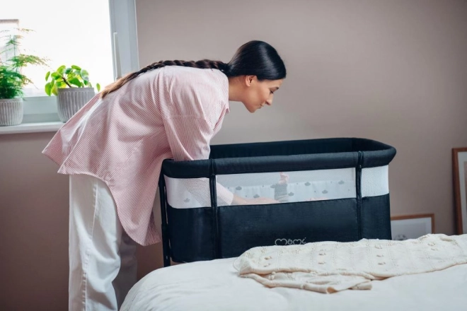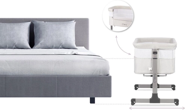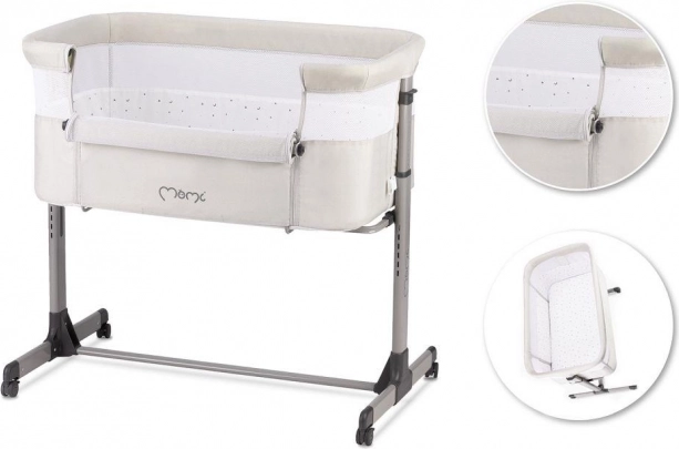 - Otroška posteljica MoMi REVO je popolna rešitev za brezskrbno nočno hranjenje. Zahvaljujoč snemljivi stranici bo otrok blizu vas in ga boste lahko udobno nahranili.