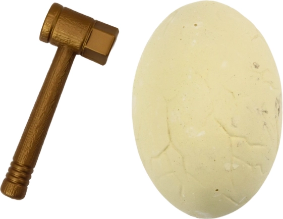 Komplet vključuje trpežno kladivce in dve dleti, ki otrokom pomagata varno in učinkovito sprostiti fosile iz jajca. Ni treba ničesar dodatnega.