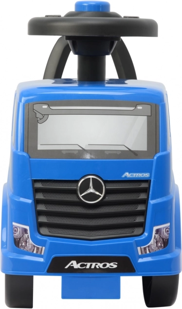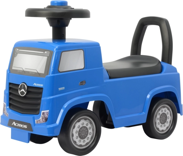 Modri poganjalec MERCEDES Actros je idealen za otroke, ki se znajo samostojno odrivati z nogami. Nizka teža olajša rokovanje staršem in otrokom, čvrsta konstrukcija pa zagotavlja varno vožnjo po gladkih površinah doma, na dvorišču in na vrtu. Poudarek na detajlih – platišča, žarometi in maska – ustvarja avtentičen videz tovornjaka.