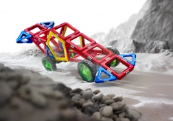 Zgradite si dirkalne avtomobile po navodilih ali lastni domišljiji! GEOSMART Roboracer je dinamičen magnetni gradbeni set z živahnimi barvami in robustno konstrukcijo, ki vabi k odkrivanju osnovnih tehničnih principov. Močni magneti z dvojnim varnostnim sistemom držijo modele trdno skupaj in zagotavljajo dolgo življenjsko dobo igrače.