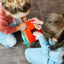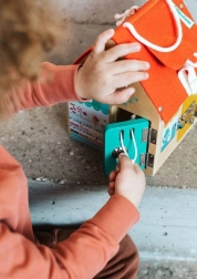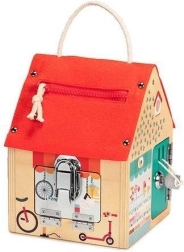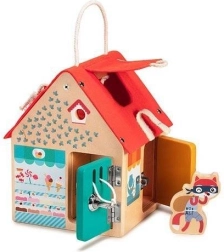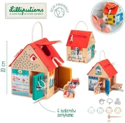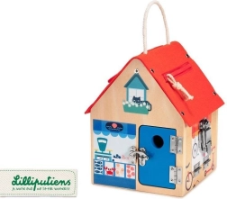 Ta kakovostno izdelana hišica belgijske znamke LILLIPUTIENS ponuja na vsaki strani in na strehi drugo aktivnost. Otroci bodo odpirali in zapirali vratca v različne »trgovinice« (kolesarska, slaščičarna, zlatarna, živila) ter raziskovali 6 vrst zapenjanja: ključ, pomična zapažka, zaskok, kaveljček, zadrga in ježek. Tekstilna streha je trdna in pritrjena s pritiskači, hišica pa ima tudi vrvni ročaj za enostavno prenašanje.
