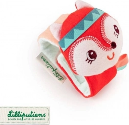 Vesel dizajn lisice s kontrastnimi barvami, ušeski in trakovi vabi k raziskovanju, prijemanju in tresenju ter tako podpira fino motoriko.
