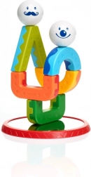 Barvni liki in kroglice z obrazi spodbujajo fino motoriko, koordinacijo oko–roka in prostorsko zaznavanje. Idealna igrača za prve gradbene poskuse.