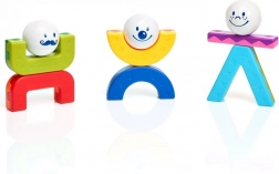 Veliki, trpežni deli se zaradi magnetov zlahka povezujejo. Otroci hitro sestavijo vesele akrobate in preproste stolpiče brez frustracije in z največjim veseljem.
