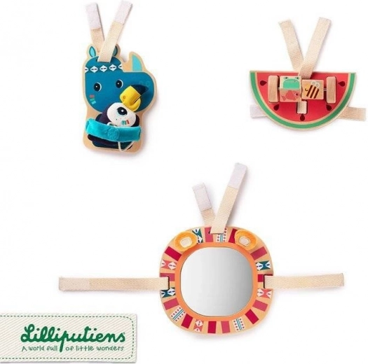Ta čudovit set treh lesenih visečih igrač iz kolekcije Nosorog Marius belgijske znamke Lilliputiens bo očaral s svojo praktičnostjo in kakovostjo. Vsaka od igrač je izdelana iz naravnega lesa in nudi edinstveno izkušnjo za otroke, starejše od devet mesecev:
