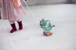 Zmaj Joe je opremljen z lesenimi kolesci, ki podpirajo razvoj motoričnih spretnosti, in je idealen za prve korake otrok.