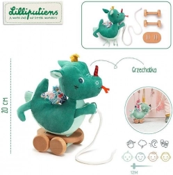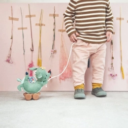 Del igrače je tudi mehka vrvica za vlečenje, ki je dovolj dolga za udobno uporabo. Zabaven dizajn zmaja s cvetličnimi krili in prikupnimi detajli bo razveselil ne le otroke, temveč tudi njihove starše. Možno jo je povezati z drugimi igračami iz iste kolekcije, kar omogoča razširjeno igralno izkušnjo.