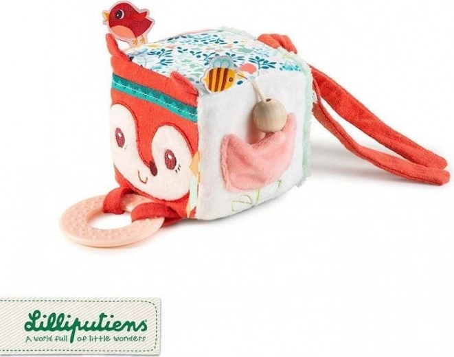 Ta interaktivna kocka iz kolekcije Lisička Alice znamke Lilliputiens ponuja nešteto možnosti za zabavo in razvoj otroka. V njej najdete: