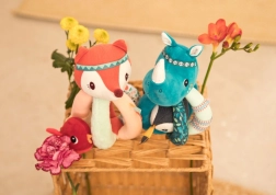 Ta izvirna ropotuljica lisica Alice razveseli dojenčke od rojstva. Zaradi premišljene oblike jo otroške ročice zlahka primejo in odkrivajo različne taktilne dražljaje – mehak pliš, šušteče dele in skrito ptičko. Vgrajeni zvonček oddaja nežen zvok, ki pritegne pozornost in spodbuja zaznavanje.