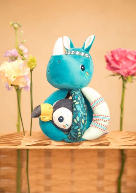 Odkrijte svet z nosorogom MARIUSOM in njegovim prijateljem tukanom PABLO. Ta mehka ropotuljica je zasnovana za najmlajše, da razvija njihovo čutno zaznavanje, fino motoriko in radovednost. Zaradi lahke zasnove in premišljene oblike jo otrok zlahka prime in raziskuje.