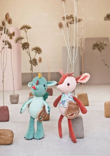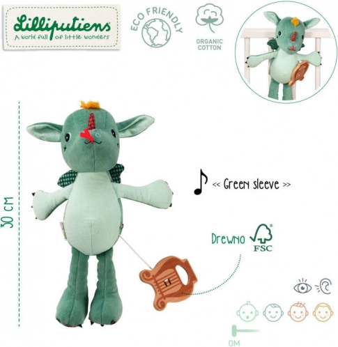 Plišasti zmaj Joe znamke Lilliputiens je zasnovan kot popoln prvi prijatelj za vašega otroka. S svojo višino 32 cm in leseno liro ne služi le kot igrača, temveč tudi kot glasbeni dodatek, ki po potegu predvaja tradicionalno melodijo 'Green Sleeves'. Ta glasbeni zmaj ima majhne krempeljčke, karo krilca in ljubek videz z izrazitimi detajli, ki spodbujajo otrokovo domišljijo.