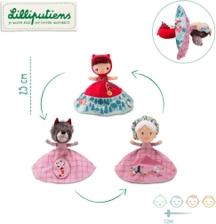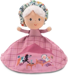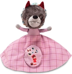 Obožujte lutko, ki združuje tri like v eni igrački - Rdečo Kapico, Babico in Volka. Dovolj je le zasukati lutko in že se pojavijo različni liki iz priljubljene pravljice. Lutka je narejena iz mehkega materiala, ki omogoča manipulativno igro, in zagotavlja varno igro s svojo nežno površinsko obdelavo.
