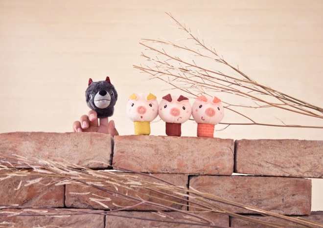 Oživite klasično pravljico TRI PRAŠIČKI s prikupnim kompletom prstnih lutk LILLIPUTIENS. Mehke tekstilne lutke volka in treh prašičkov se prilegajo otroškim in odraslim prstom ter spremenijo branje v igriv, skupen trenutek.