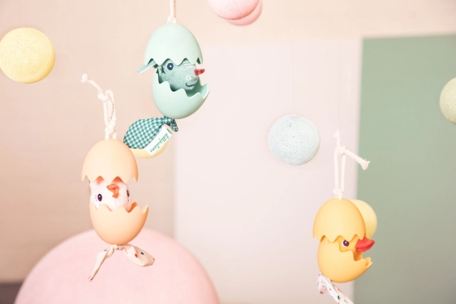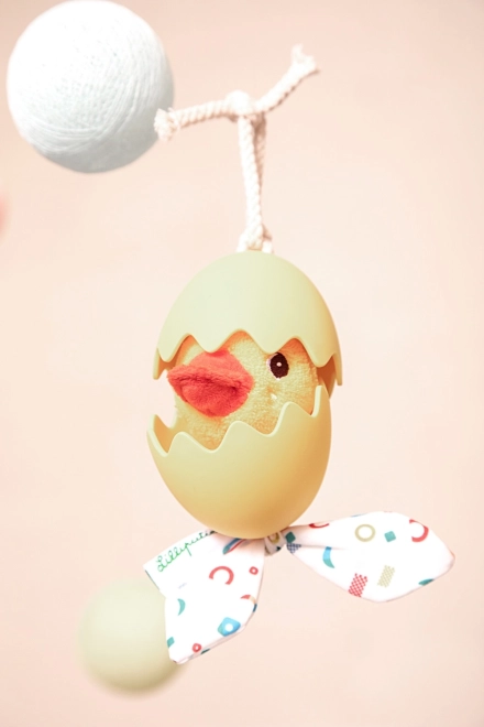 Zahvaljujoč silikonski lupini je jajce prijetno na dotik in ga je mogoče zlahka očistiti z enostavnim brisanjem. Praktična zanka omogoča hitro obešanje kamor koli potrebujete. Kombinacija tekstila in silikona podpira čutni razvoj in fino motoriko.