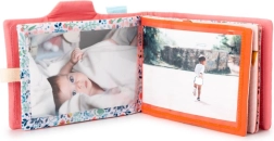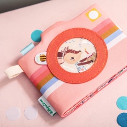 Album ima 10 strani velikosti 15 × 18 cm z izpirljivo površino, zato zlahka prenese vsakodnevne dotike otroških rok. Material iz 100% poliestra in akrilnega pletenja je mehak, lahek in prijeten za držanje. Primerno od 9 mesecev.
