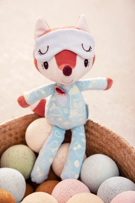 Ljubka plišasta spremljevalka v posteljici za dojenčke in malčke. Lisica Alice ima svetleči pižamico in spalno masko, ki po osvetlitvi v temi nežno žarita. Pomirjujoča svetloba pomaga otrokom zaspati in se počutiti varno. Igračo je mogoče prati v pralnem stroju na 30 °C v nežnem ciklu. Mere približno 19 × 10,5 × 30 cm.