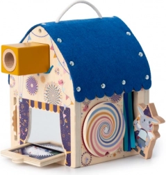 Odpiralni elementi, daljnogled in drugi dodatki vabijo k domišljijski igri ter razvijajo fino motoriko.