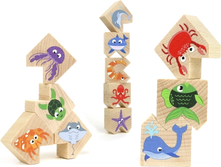 Vstopite v podvodni svet, kjer otroci razvijajo svojo ročno spretnost in spomin skozi igro, polno barvitih morskih živali. Ta balansirna igra ponuja ne le zabavo, temveč tudi izobraževalno vrednost za vaše otroke. Lepo ilustrirani bloki, ki se med seboj prilegajo, predstavljajo izziv za spretnosti in potrpežljivost vaših malčkov.