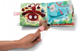 Medvedek César se pred spanjem poslovi od svojih prijateljev – in vi lahko pri tem sodelujete! Vstavite prst v prstno lutko, oživite Césarja in vsakič pripovedujte drugačno zgodbo. Mehka tekstilna izvedba je prijetna na dotik, spodbuja zaznavanje in vabi k crkljanju ter prvim branjem.