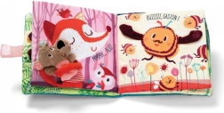 Tekstilna izvedba je nežna do otroške kože. Knjižico preprosto operete pri 30 °C (nežen cikel). Izpolnjuje varnostne standarde ASTM F963/CPSIA.