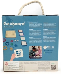 Geoboard je idealen za domačo uporabo in v šoli, kjer lahko odlično podpira otrokovo ustvarjalnost, koncentracijo in potrpežljivost. Je enostavno prenosljiv zaradi praktične embalaže z ročajem, kar iz njega naredi idealno igračo za na pot.