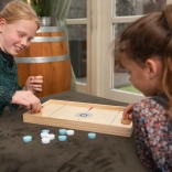 Zaradi vzdržljivega in prenosnega dizajna lahko igro vzamete s seboj kamorkoli – v šolo, na piknik ali na katerokoli drugo priložnost, kjer želite odlično zabavo. Vključuje obojestransko igralno ploščo, 10 žetonov in 2 potiskača, kar zagotavlja ure in ure zabave.