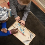 Namizni hokej in matematična igra za otroke ponuja dvojno porcijo zabave! V prvem delu igre imata dva igralca nalogo, da svoje žetone zadenejo na ciljno polje. V drugem delu se pomerita v namiznem hokeju, in sicer dokler eden od igralcev ne doseže sedmih golov. Obe igri sta zasnovani tako, da spodbujata koordinacijo oko-roka in razvijata številčne veščine.