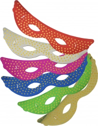Dodajte svoji maskirani zabavi pridih elegance. Lahke papirnate maskice z zlatimi bleščicami so udobne za nošenje zahvaljujoč elastični vrvici in odlično sedejo na obraz. V pakiranju najdete 6 kosov v različnih barvah, zato zlahka uskladite celotno družbo.