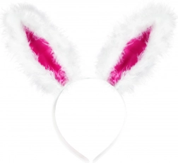 Belo plišasto uho z rožnatim notranjim delom deluje prisrčno in drži obliko. Obroč je lahek in udoben za nošenje skozi ves večer.
