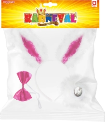 V hipu se prelevite v prisrčnega zajčka. Ta celovit komplet vsebuje vse, kar potrebujete za izrazit in fotogeničen kostum: mehka ušesa na obroču, vpadljiv rožnat metuljček in praktičen pripenjajoč repek. Zaradi lahke zasnove in prijetnih materialov je udoben za nošenje skozi cel večer.