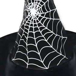 Dodajte otroškemu kostumu čarovnice ali čarovnika pravi šarm. Črn klobuk z izrazitim motivom pajčevine deluje učinkovito tako na fotografijah kot na plesišču. Odlična izbira za zabave za noč čarovnic, šolske karnevale in maškarade.