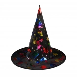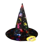 Pripravite se na noč čarovnic ali tematske zabave s tem čarovniškim klobukom. Klobuk je črn z holografskimi vzorci, ki prikazujejo netopirje in zvezde, idealen za vsakogar, ki želi izstopati.