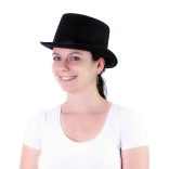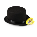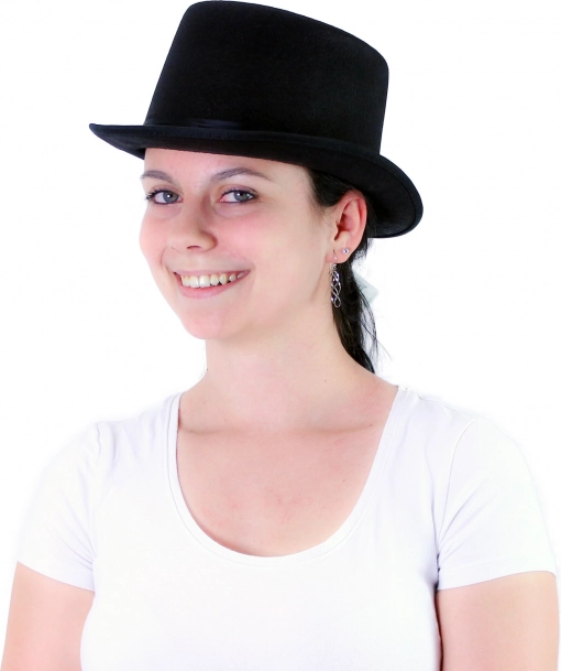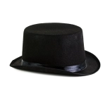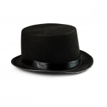 Črn cilinder z gladkim satenastim trakom, idealen za formalne priložnosti.
