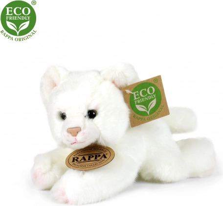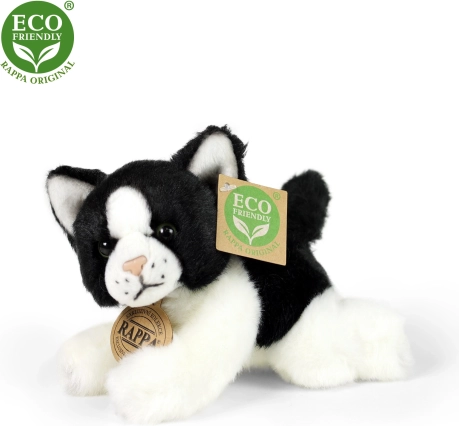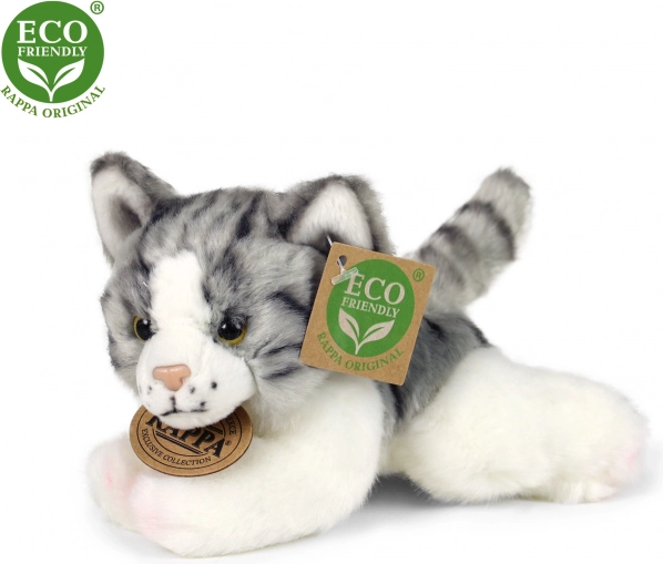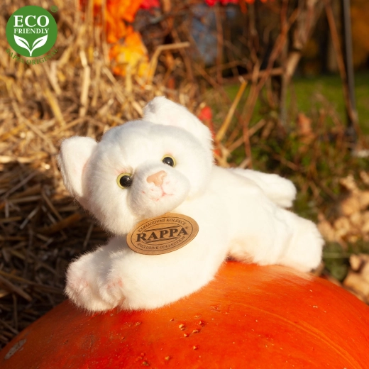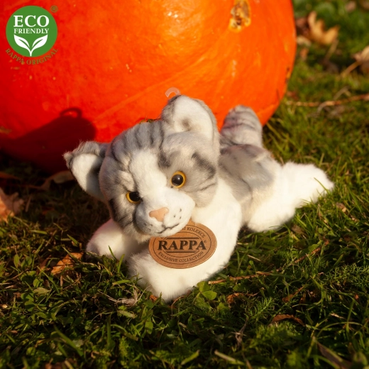 Lepa plišasta mačka iz ekskluzivne kolekcije RAPPA, izdelana iz ekoloških materialov. Polnilo iz recikliranih PET steklenic je na dotik nerazločno od običajnega.